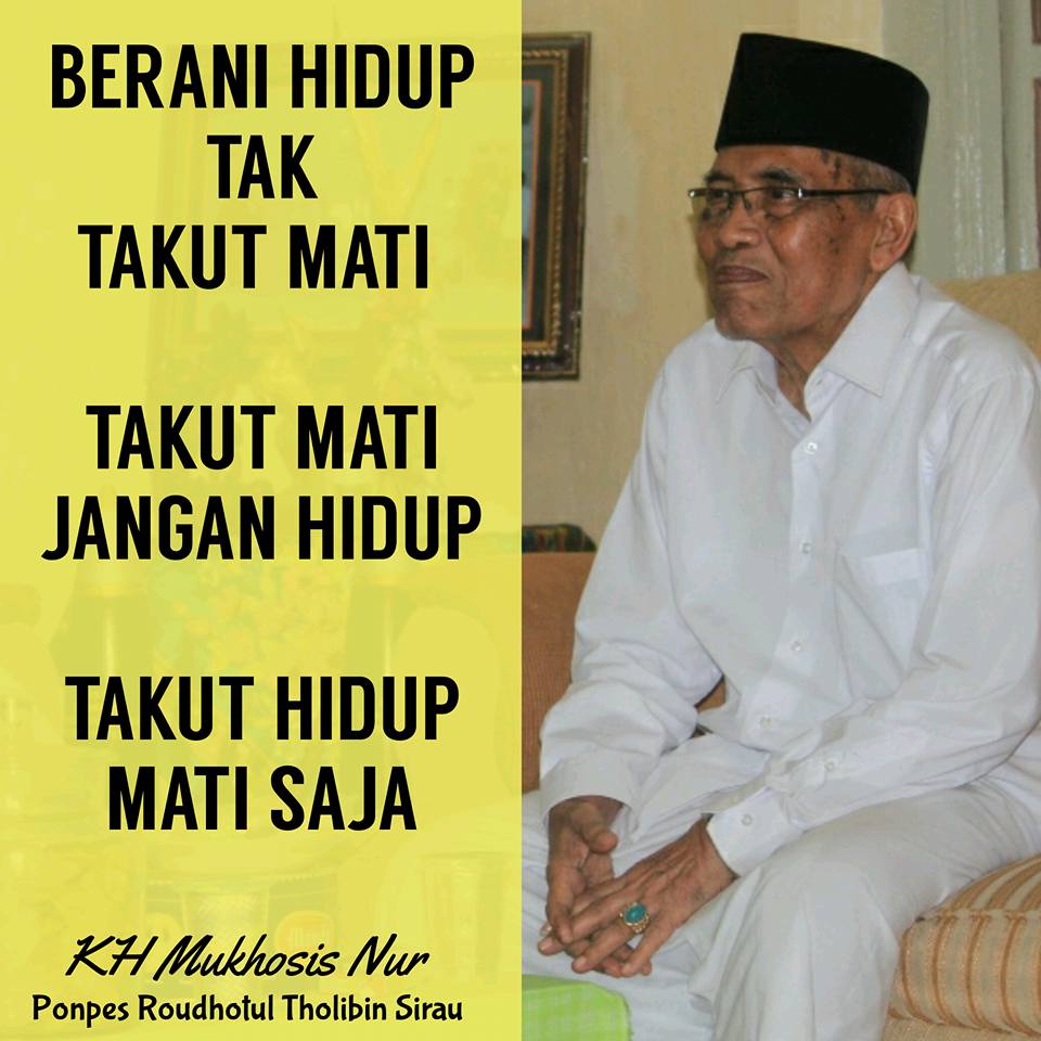 "Berani Hidup tak takut mati, Takut mati jangan hidup, Takut Hidup mati saja" itulah quote populer KH. Mukhosis Nur yang selalu teringat dan tertanam di hati para santri.