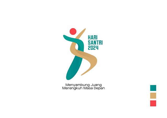 Logo Hari Santri 2024 resmi diluncurkan dengan tema "Menyambung Juang Merengkuh Masa Depan." Logo ini menggambarkan dua tali hijau pine dan emas yang melilit, membentuk siluet santri berlari dengan tangan terangkat, serta lingkaran merah di bagian atas.